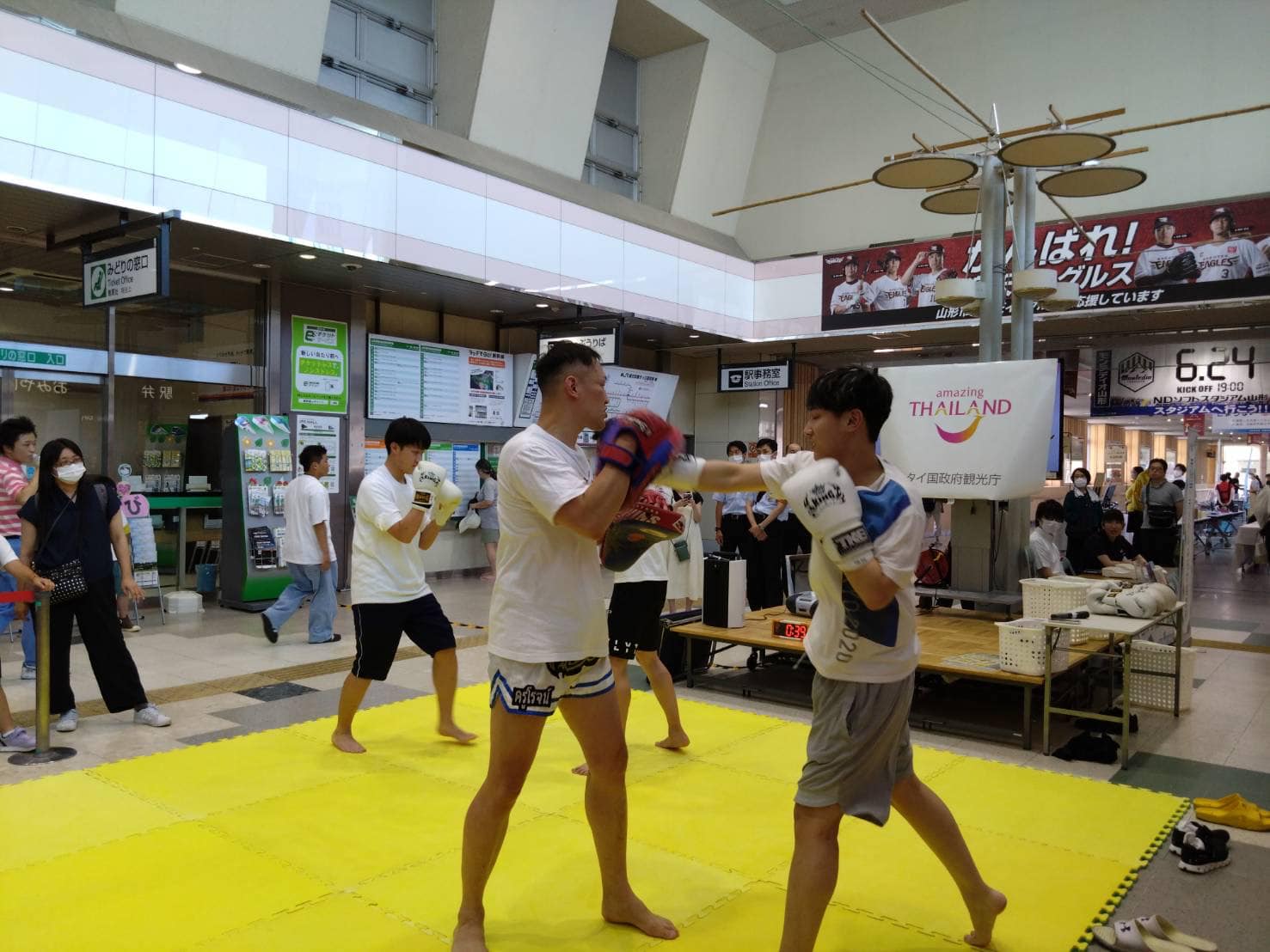 先週末6月17日、JR山形駅中央改札口前で「山形県縦断ムエタイ体験in山形市」を開催しました。
