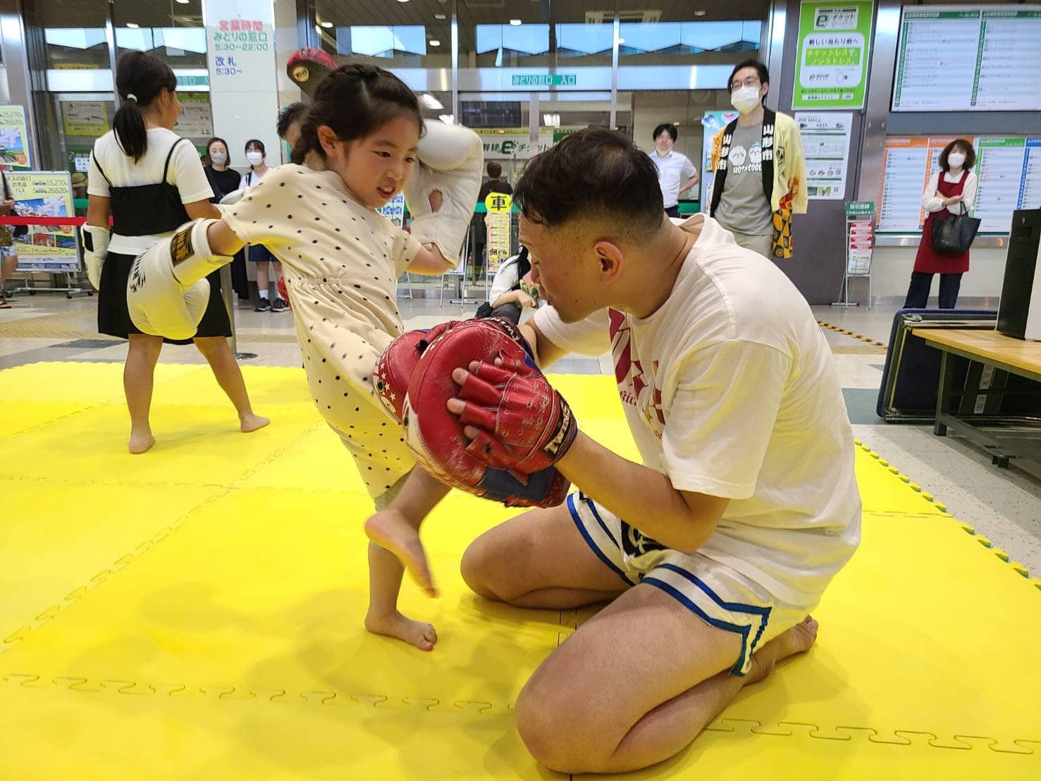 元々JR山形駅と山形市の共同開催事業「やまがたエキナカマルシェ」にムエタイ体験会を迎え入れていただき本事業と連携させていただきました。小さな女の子達の参加が多く着実にムエタイの認知度が上がってきていると感じました。