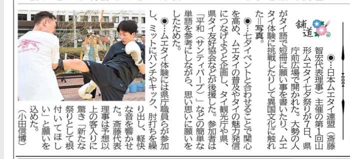 2023年7月8日山形新聞 第1回山形ムエタイ七夕祭りが掲載されました