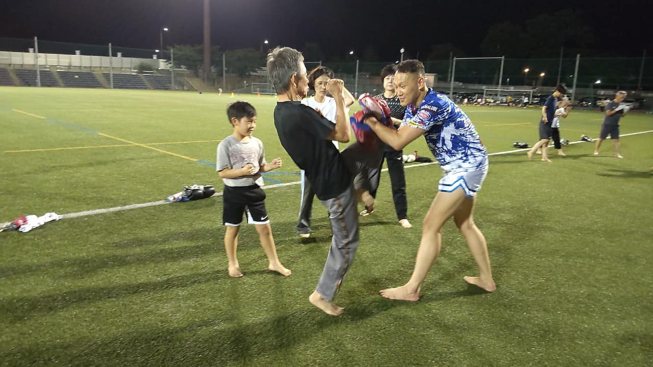 昨年に続き2年目の山形市主催屋外ムエタイ教室。