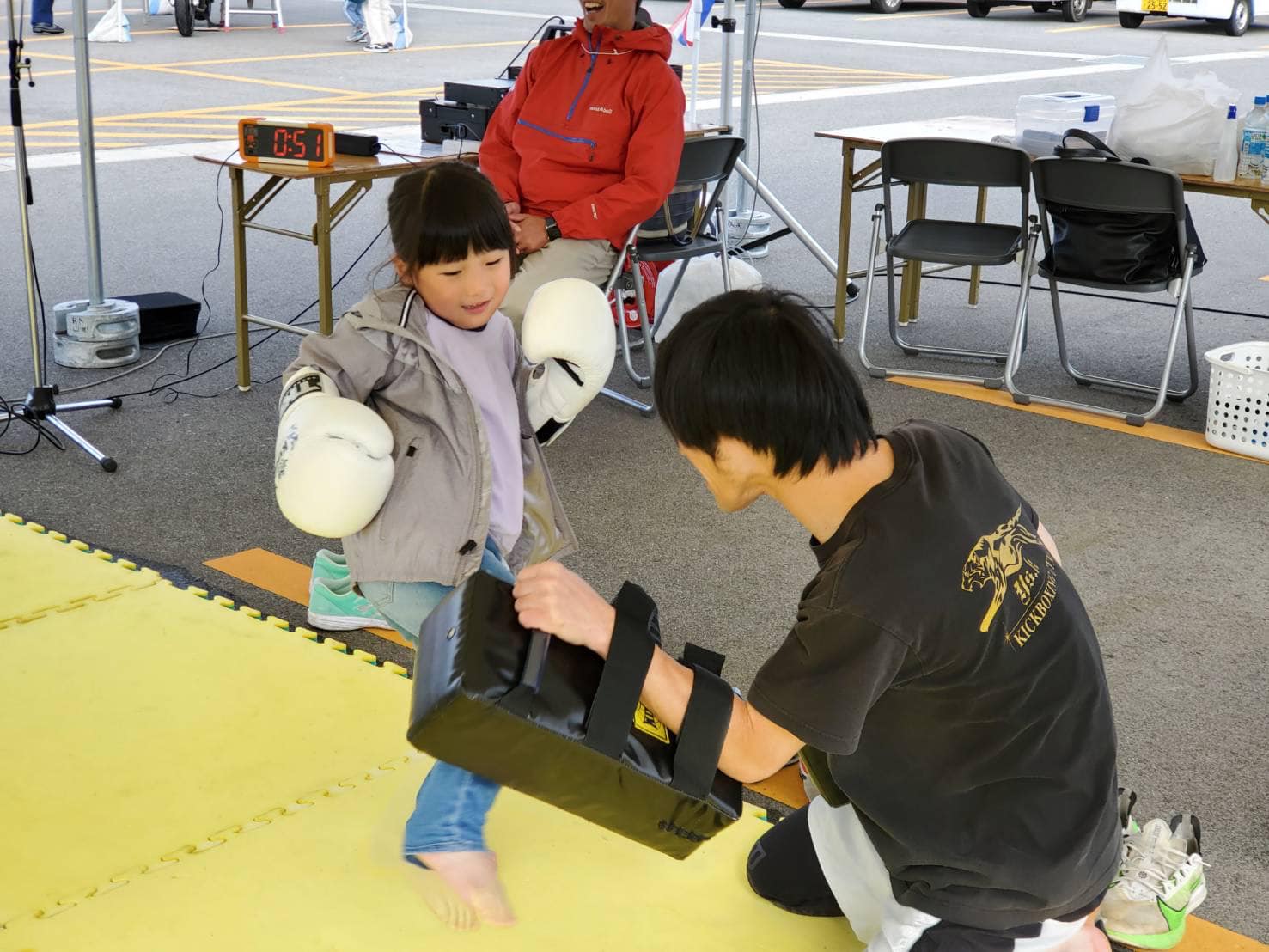 長井市出身のソルジャー中川紹介とミット打ちエキシビション後に体験会スタート。物珍しさもあり最初こそ様子見があっという間に長蛇の列。特に小さな子供や女性の体験が多く1時間の体験は時間オーバーして対応するほどの人気ぶりでした。