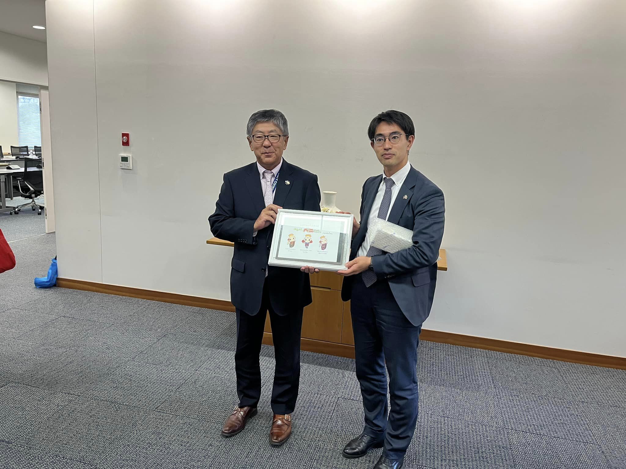 タイ国政府観光庁ターパニー総裁、日本大使館梨田大使、リアリークールエアラインズCEOパティーサラシン氏など普段会うことが出来ない政財界重鎮と懇願する機会をいただきました。このあと11月末にタイ訪問される吉村知事へ良い形で繋がる事を願い山形県から広がるムエタイ普及の実績と今後の方針を報告し親タイ友好の証として井上副市長からお披露目したばかりの額入りタイベニちゃんが寄贈されました。